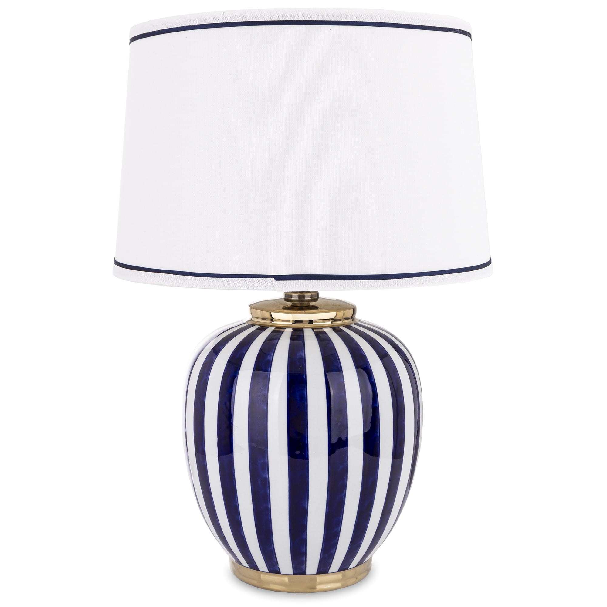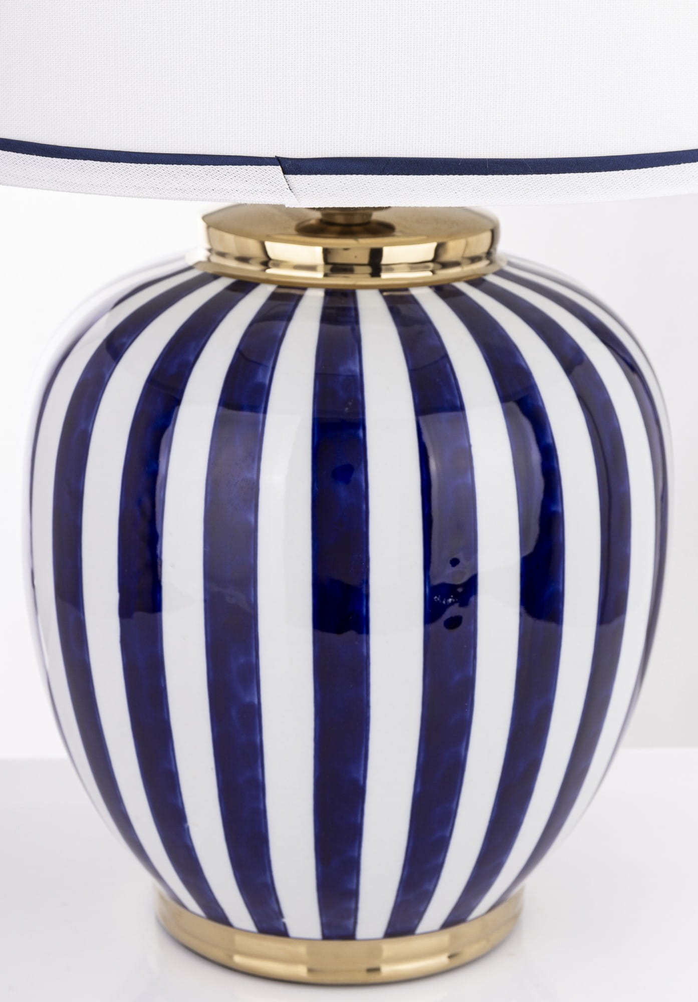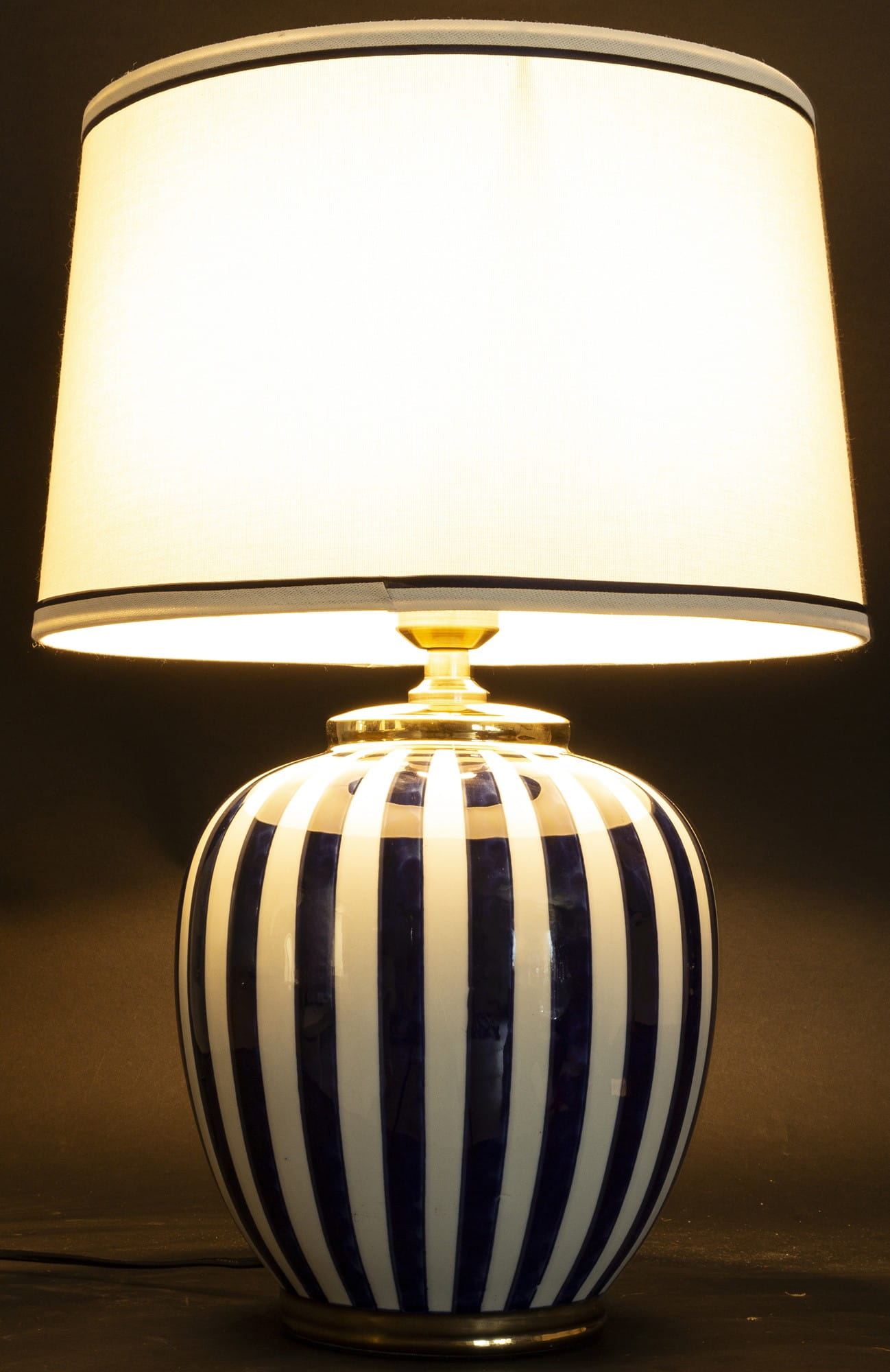 Duża, ceramiczna lampa stołowa o klasycznym kształcie ze wzorem w stylu coastal. Jest niezwykle elegancka a jej światło pomaga stworzyć przytulną i komfortową atmosferę w pomieszczeniu. Wspaniała dekoracja do eleganckiego salonu, jadalni, gabinetu lub sypialni. Pasuje do wnętrz klasycznych, w stylu nowojorskim, Hamptons oraz glamour.