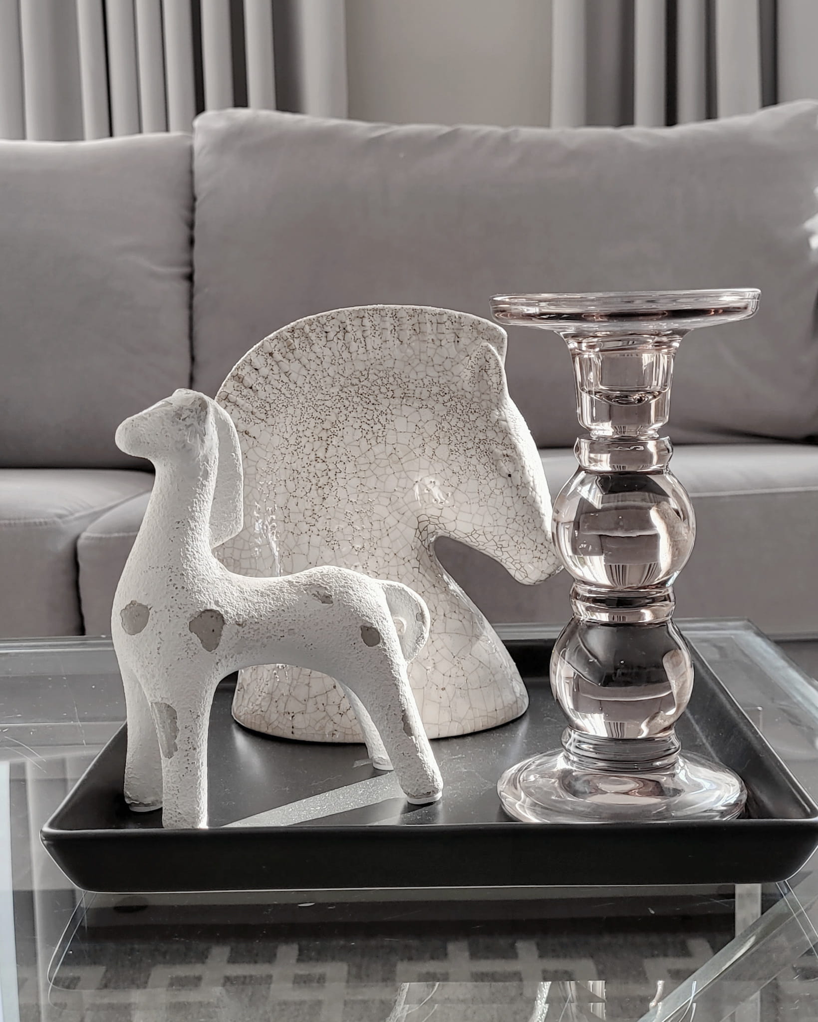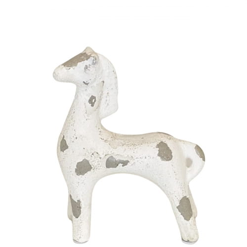 Jeżeli szukasz niebanalnej dekoracji stolika kawowego, regału czy komody ten stylizowany, minimalistyczny konik jest doskonałym wyborem. Pełna uroku i o ponadczasowym charakterze dekoracja z pewnością doskonale będzie się komponować w wielu typach wnętrz. Kolorem bazowym jest szary, ale jest on zdominowany przez białą powłokę z glinki. Konik z pewnością znajdzie się w centrum uwagi i będzie miłym akcentem dekoracyjnym.