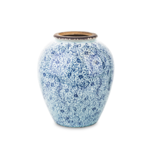 Niebieski ceramiczny wazon ze wzorem w kwiaty